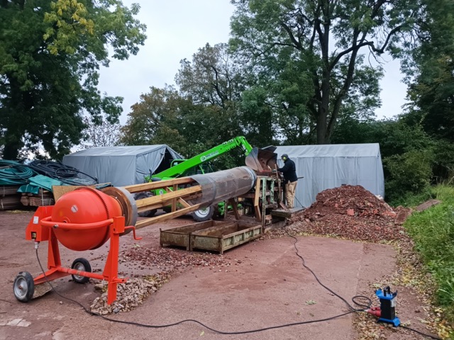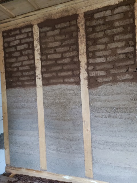 ihr lernt, wie man Stampflehmwände und Lehmziegel herstellt und probiert grundlegende Maurerarbeiten aus.